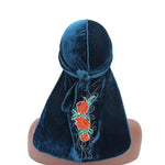 Držte vlasy k dokonalosti a díky tomu dalším způsobem módy Blue Durag V sametu s jeho květinovými vzory.