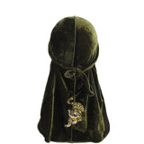 Characteristics of the green velvet durag with tiger pattern
