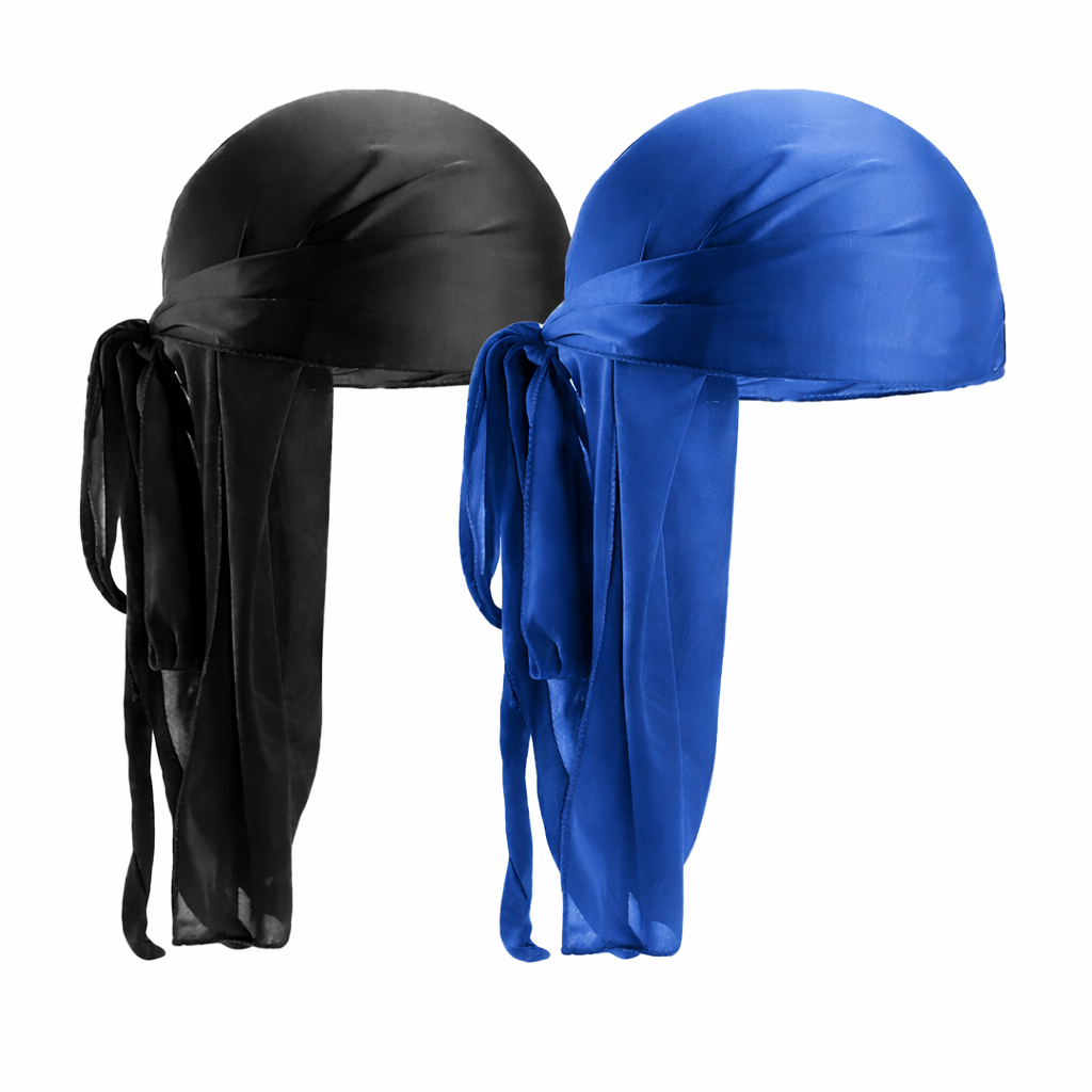 - Pack dúo que incluye 2 durags: 1 negro y 1 azul