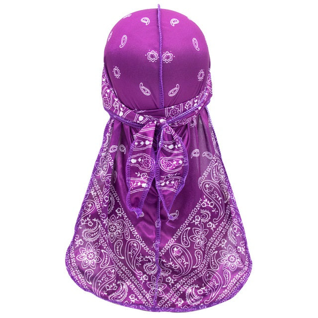 A Durag Violet z wzorami, które dodają dodatkowego koloru i oryginalności do Twojego stroju, a Durag Bardzo przyjemne w noszeniu i proste w wiązaniu, które mogą również służyć do zmodyfikowania zwykłej fryzury.