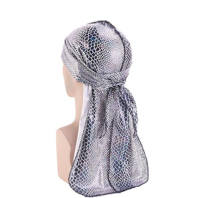 Des motifs d'écailles recouvrent entièrement ce durag blanc afin de lui donner un effet crocodile.