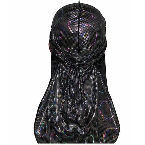 Uma coisa é que você não terá cor com este Durag preto e seus muitos círculos coloridos, um acessório que se tornará essencial e na moda para você.