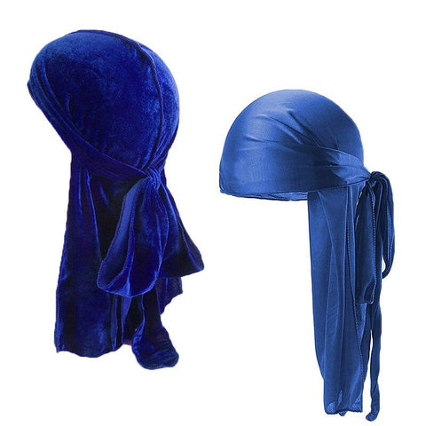 - Un Durag albastru clasic și un Durag de catifea albastră