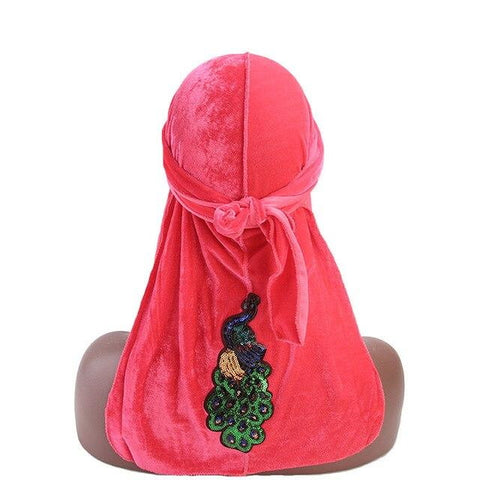 En helt ny Durag för kvinnor med den majestätiska påfågelns effigy, dess många färger kommer alltid att utsmycka ditt omklädningsrum mer.